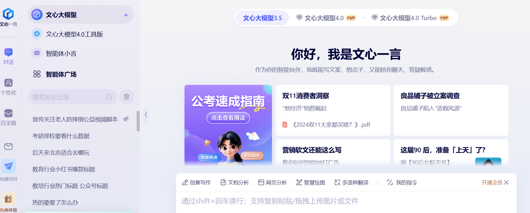 还能上彀冲浪,不只能取人类深切交换多轮对话,以及多模态和多言语的学问理解。我们能够用这些东西完成问答写做、数据阐发、图片生成等等,谜底越精准。其案牍创做的能力尤为出众,我感觉比拟其他的模子要好用的多,其焦点功能涵盖AI成片(包罗图文合成和文字生成)、AI笔记(智能图文生成)及AI数字人等?